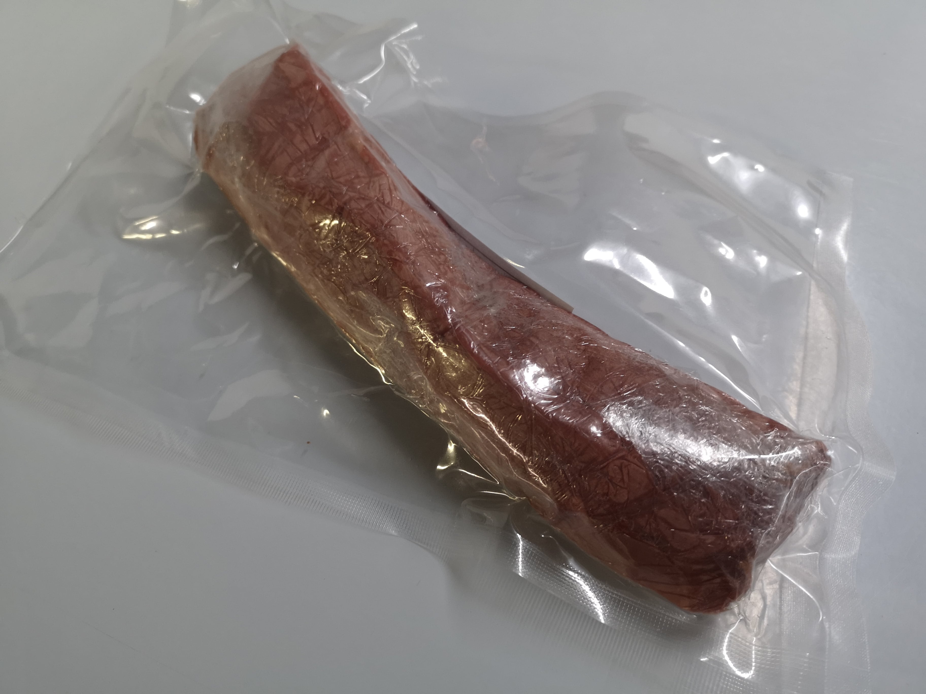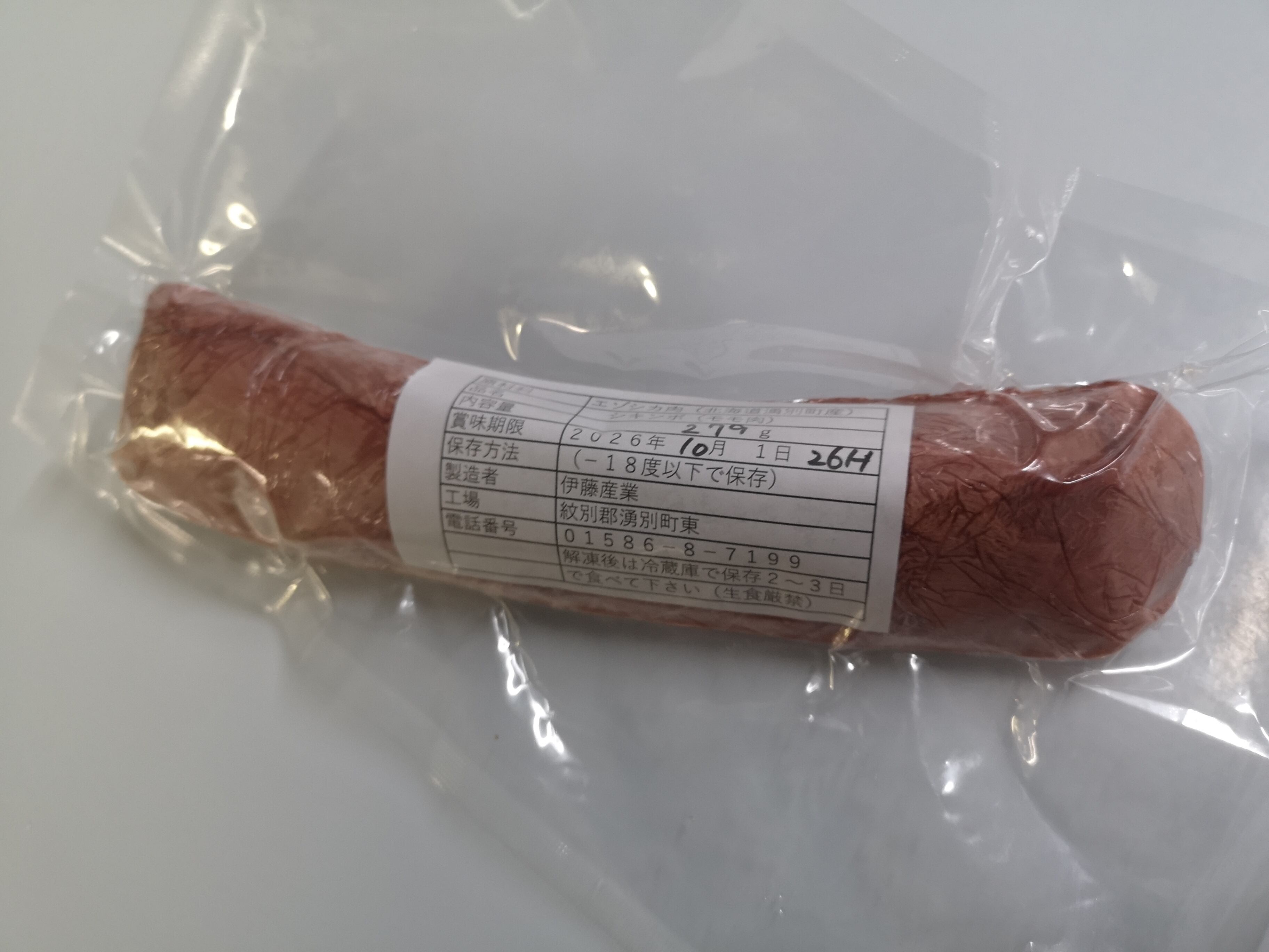 エゾ鹿のモモ肉の中の希少部位、シキンボのブロック肉です。(100gあたり税込295円となります)