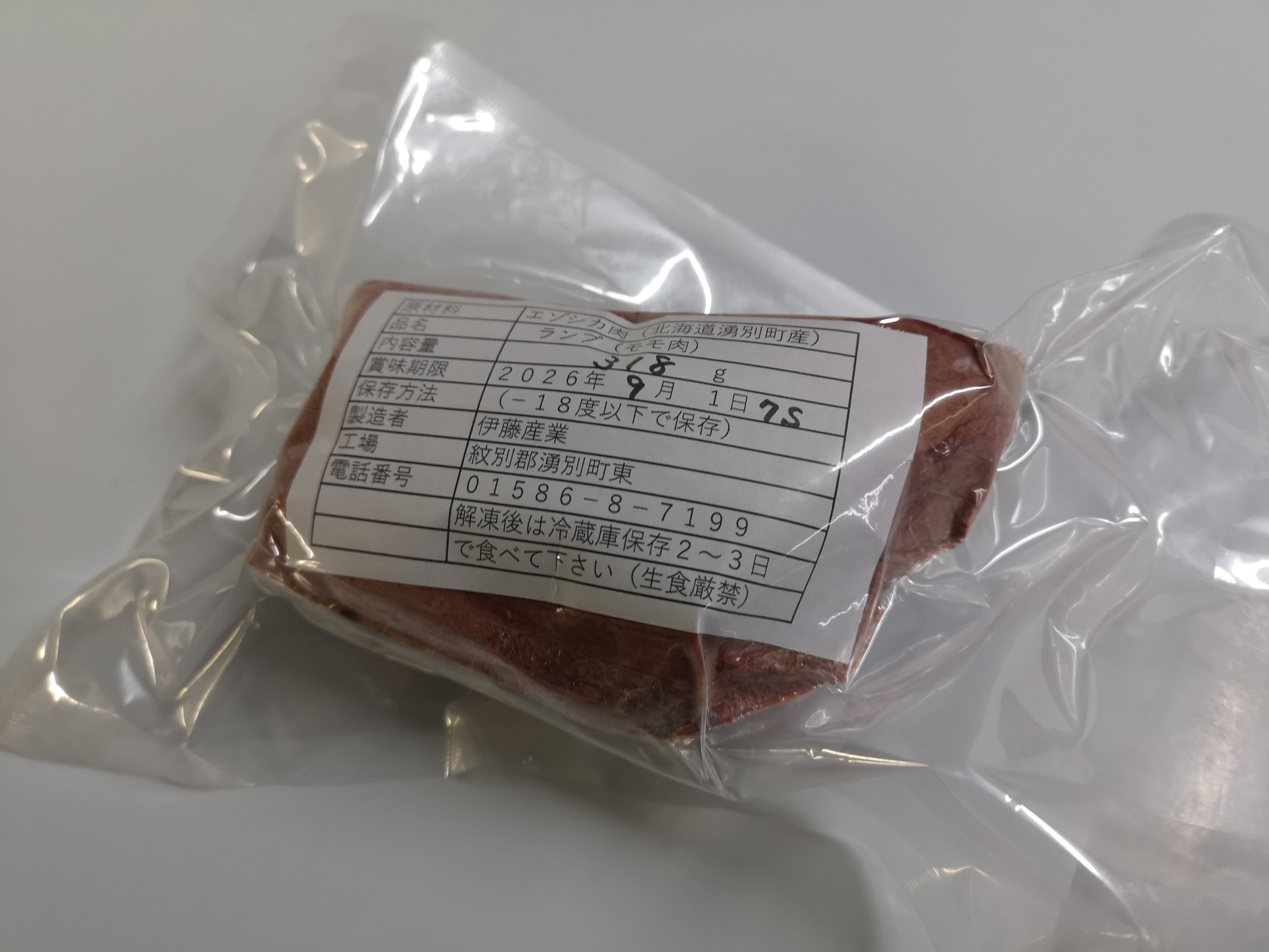 エゾ鹿のモモ肉の中のランプのブロック肉です。(100gあたり税込230円となります)