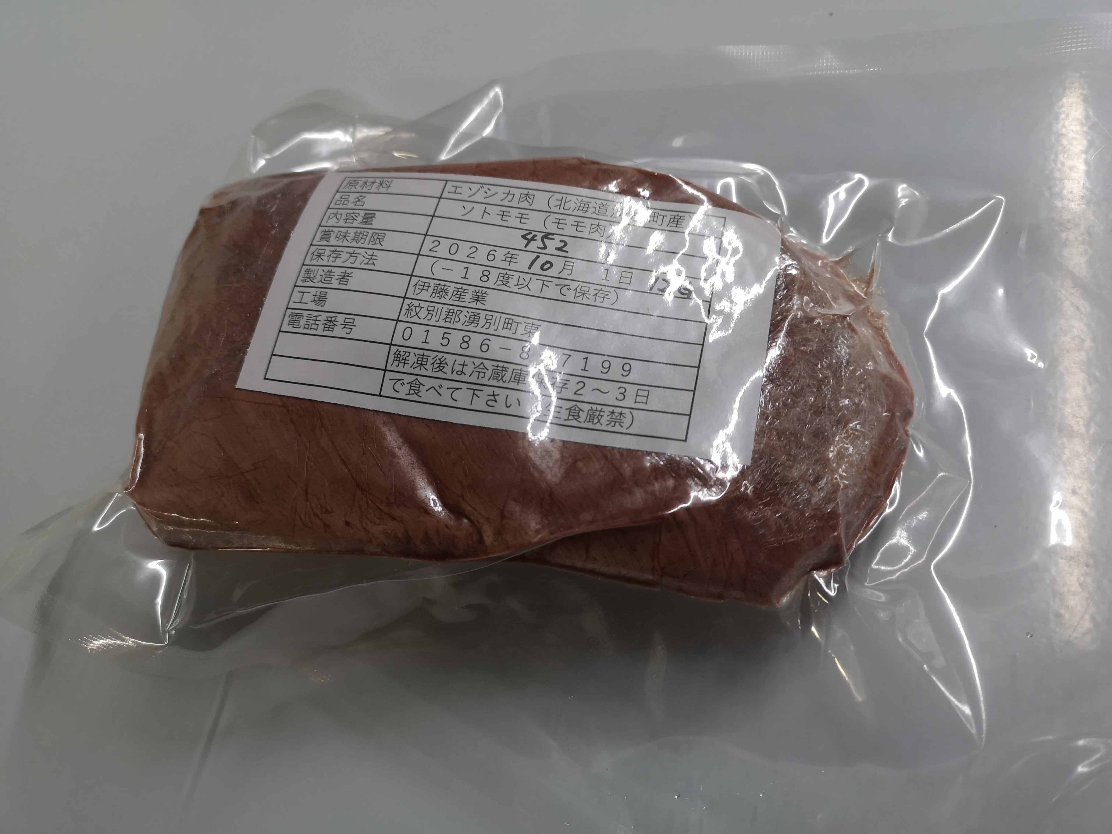 エゾ鹿のソトモモのブロック肉です。(100gあたり税込220円となります)